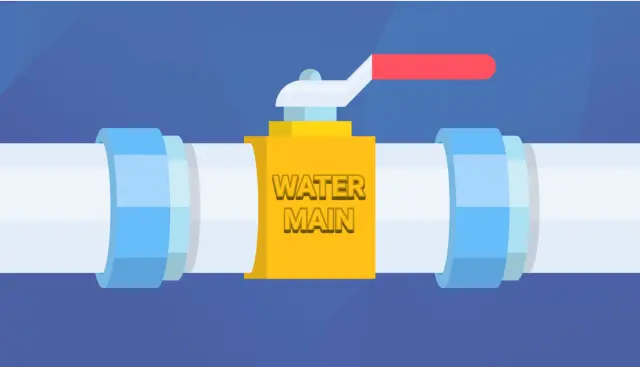 The water is shut off and the pipe is disconnected at the water main and the water meter or other convenient connection point within the house.